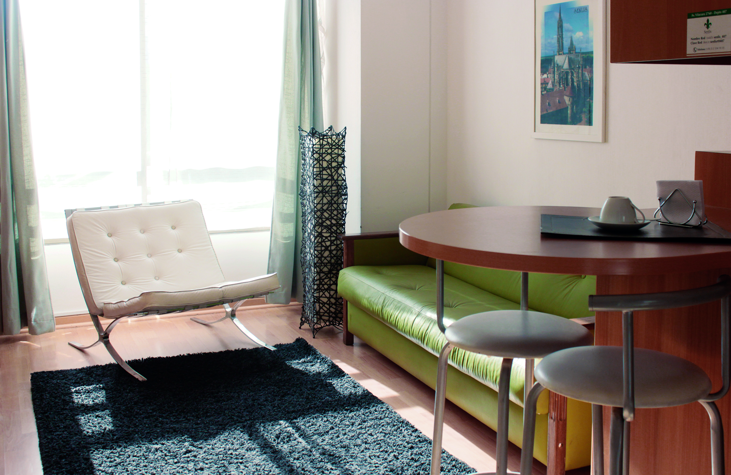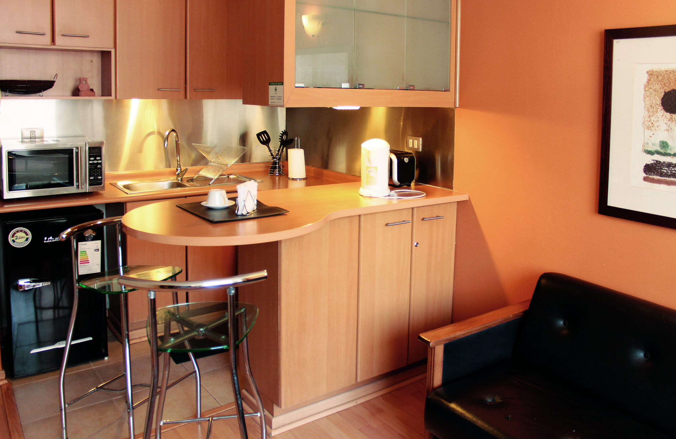 Estudios de 50 m² con capacidad hasta 2 personas. Dos ambientes, dormitorio en Suite con cama de 1,80x2,00 metros; caja de seguridad. Estar con sofá cama individual. Cocina tipo americana con platos eléctricos, horno microondas, frigobar, hervidor de agua y tostador; equipamiento de cocina para 2 personas. Plancha y tabla de planchar, Wifi y TV Cable gratuitos por fibra óptica. Servicio de limpieza de lunes a sábado. Estacionamiento en subterráneo directo a los ascensores. Los desayunos son independientes y disponemos de un servicio en Café/Restaurant Havana®, saliendo del edificio a un costado, o un desayuno tipo snack, en 3 opciones, los que son entregados en el propio departamento (consultar por tarifas y servicios). En forma adicional, Senlis Appart también dispone de lavandería, en el propio edificio y junto a los ascensores del nivel -1, con lavadoras y secadoras industriales (con fichas). También se ofrece servicio de lavandería externa (consultar por valores de estos servicios).